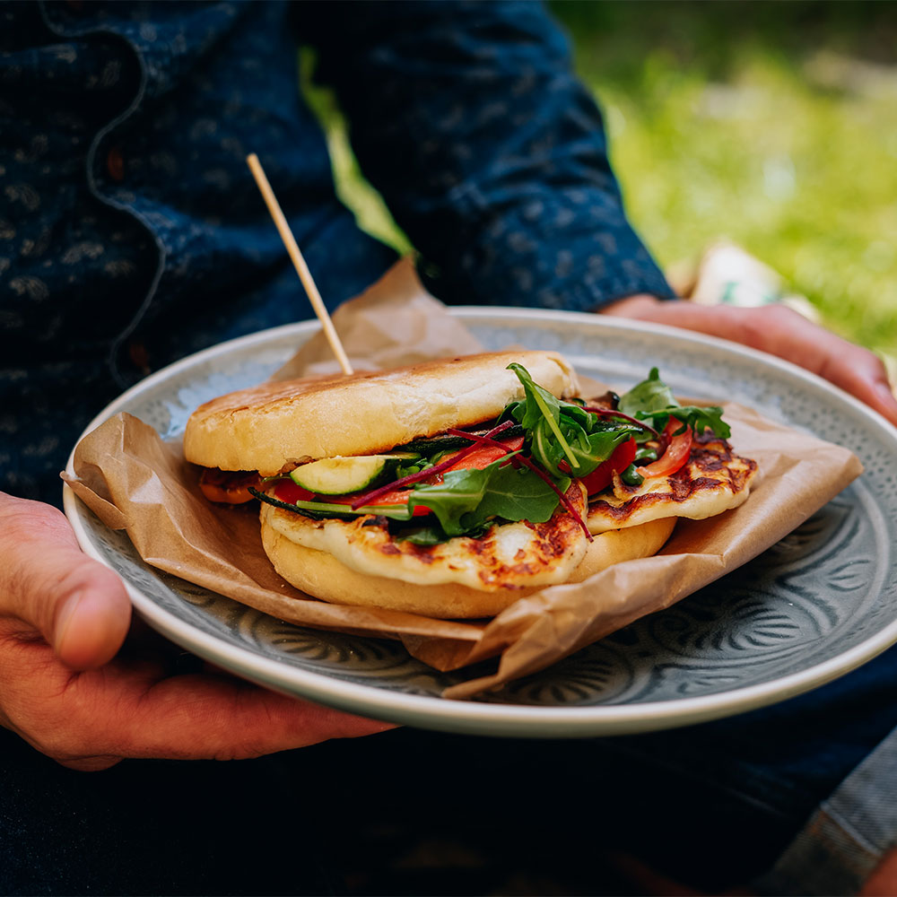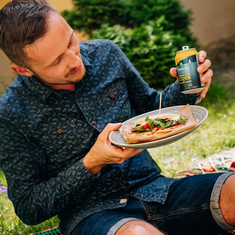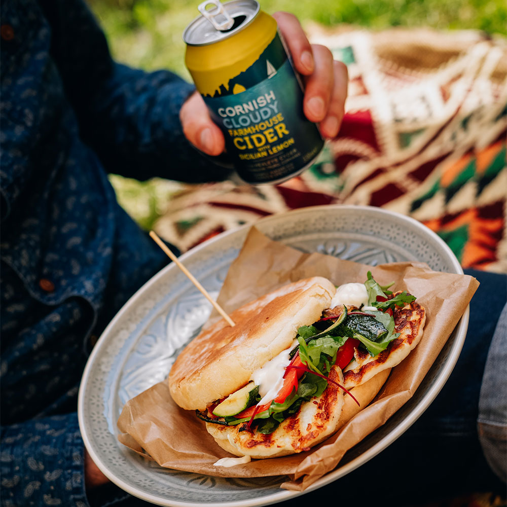 Pita sandwich s grilovaným Halloumi sýrem a se spoustou grilované zeleniny je fajn změna. Už samotný grilovaný sýr Vám dává jistou chuť dálného Kypru a v kombinaci se super osvěžující citrónovou majonézou a grilovanou zeleninou, Vám budou ostatní účastníci pikniku určitě závidět! A nezapomínejme se osvěžit Ciderem se sicilským citronem.
