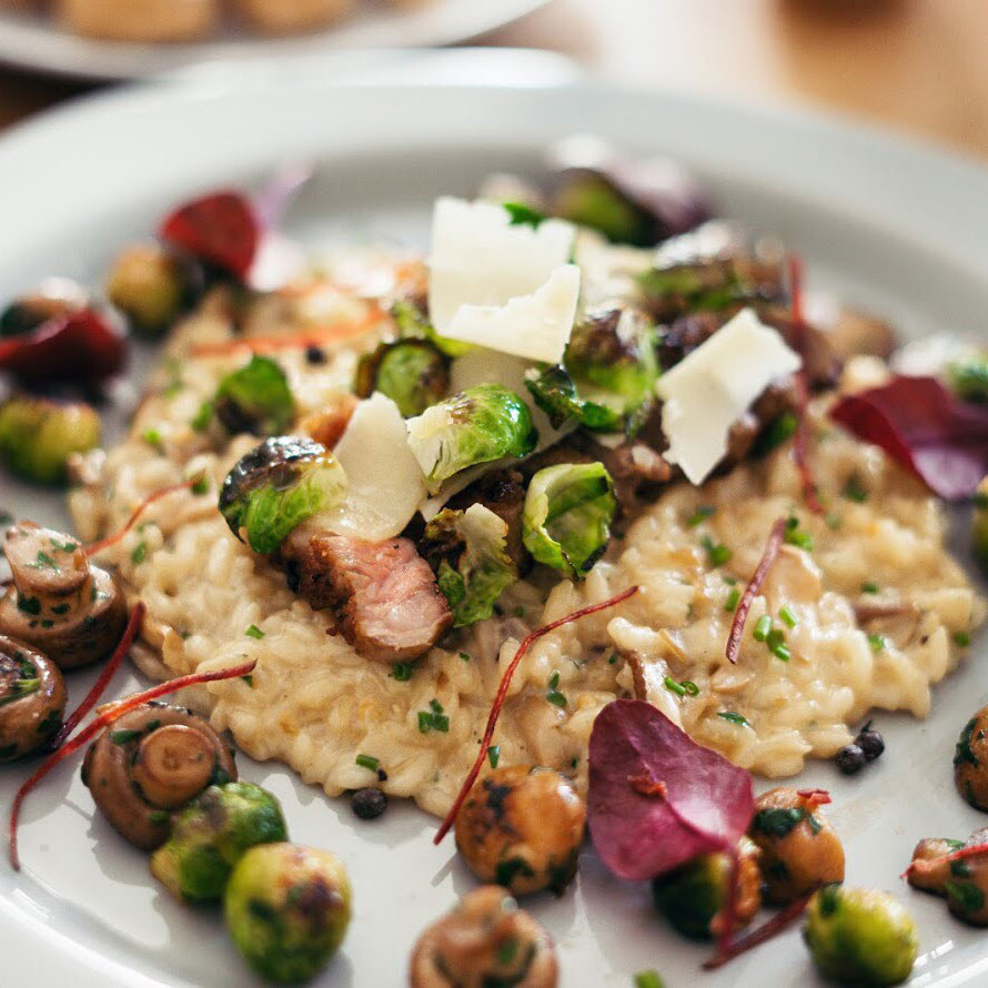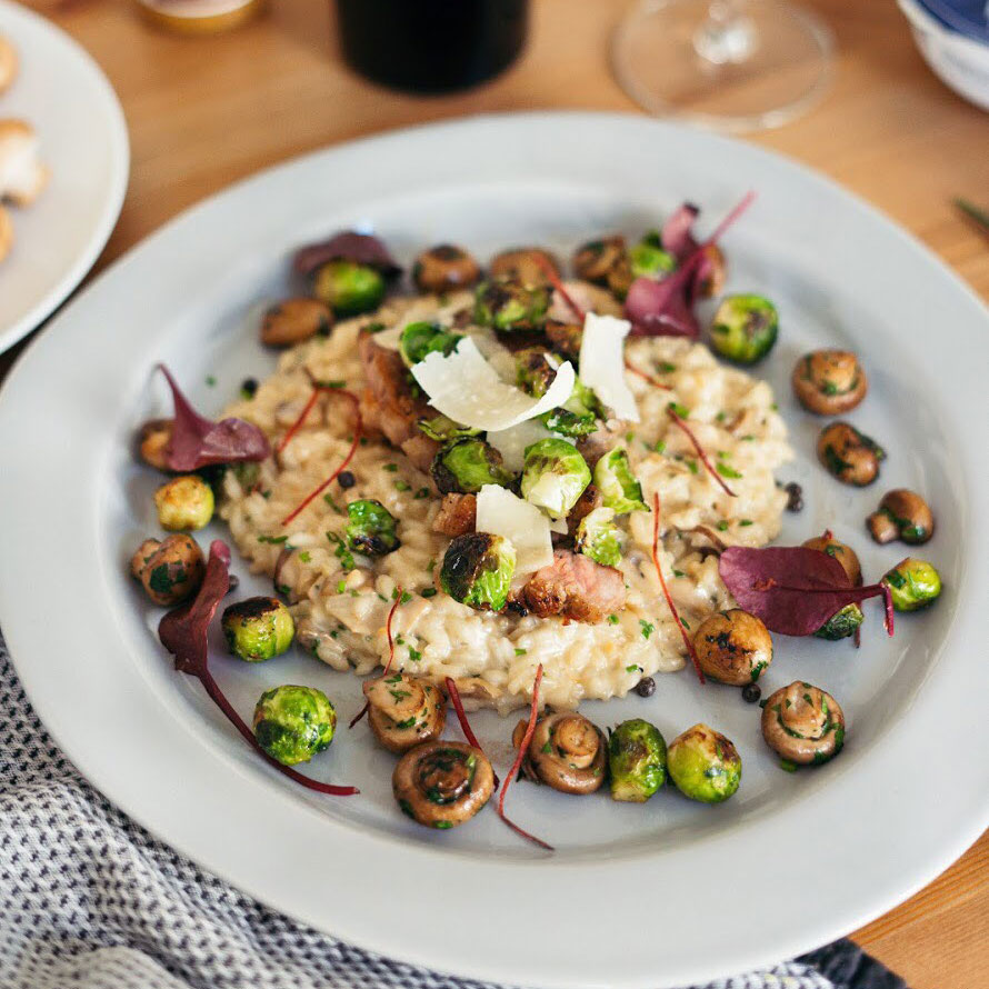 Krémové risotto s hříbky, telecím steakem a křupavou kapustičkou od FoodMILLblog