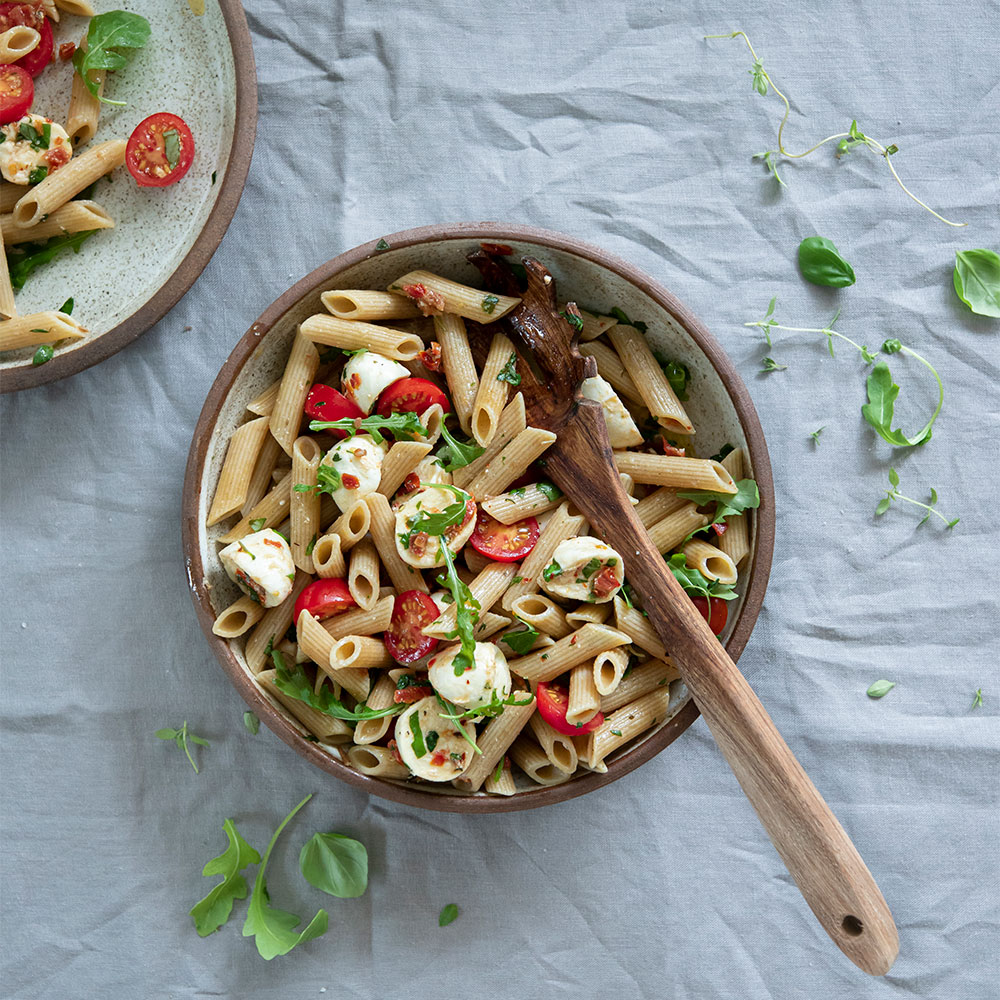 - TIP: Místo celozrnných těstovin můžete sáhnout po těstovinách cizrnových nebo těstovinách z červené čočky, které mají vysoký obsah bílkovin.