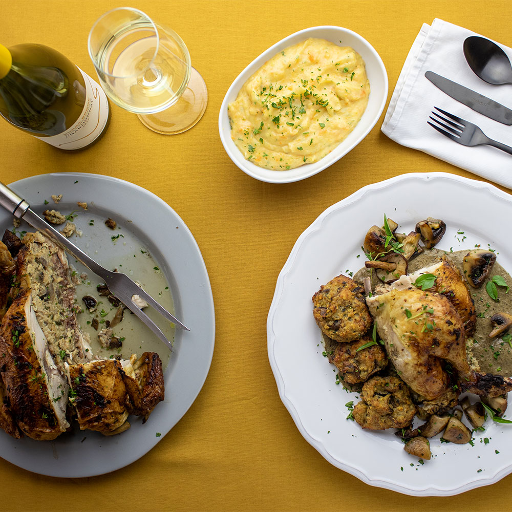 - Kuře rozpůlíme a rozčtvrtíme. Nakrájíme i houbovou nádivku, která je díky čerstvé vepřové klobásce šťavnatá a vláčná – ta vůně rozhodně stojí za to! Podáváme s bramborovou kaší či s kousky restovaných hub (pokud se vám v lese zadařilo). Pokud se vám nevešla celá směs na nádivku do břišní dutiny, rozhodně stojí za to udělat ze zbytku karbanátky – přidáte jen chlebovou nebo kukuřičnou strouhanku a vytvarujete malé placky, které rozhodně nezůstanou stranou. Sami uvidíte, jak rychle se po nich zapráší!