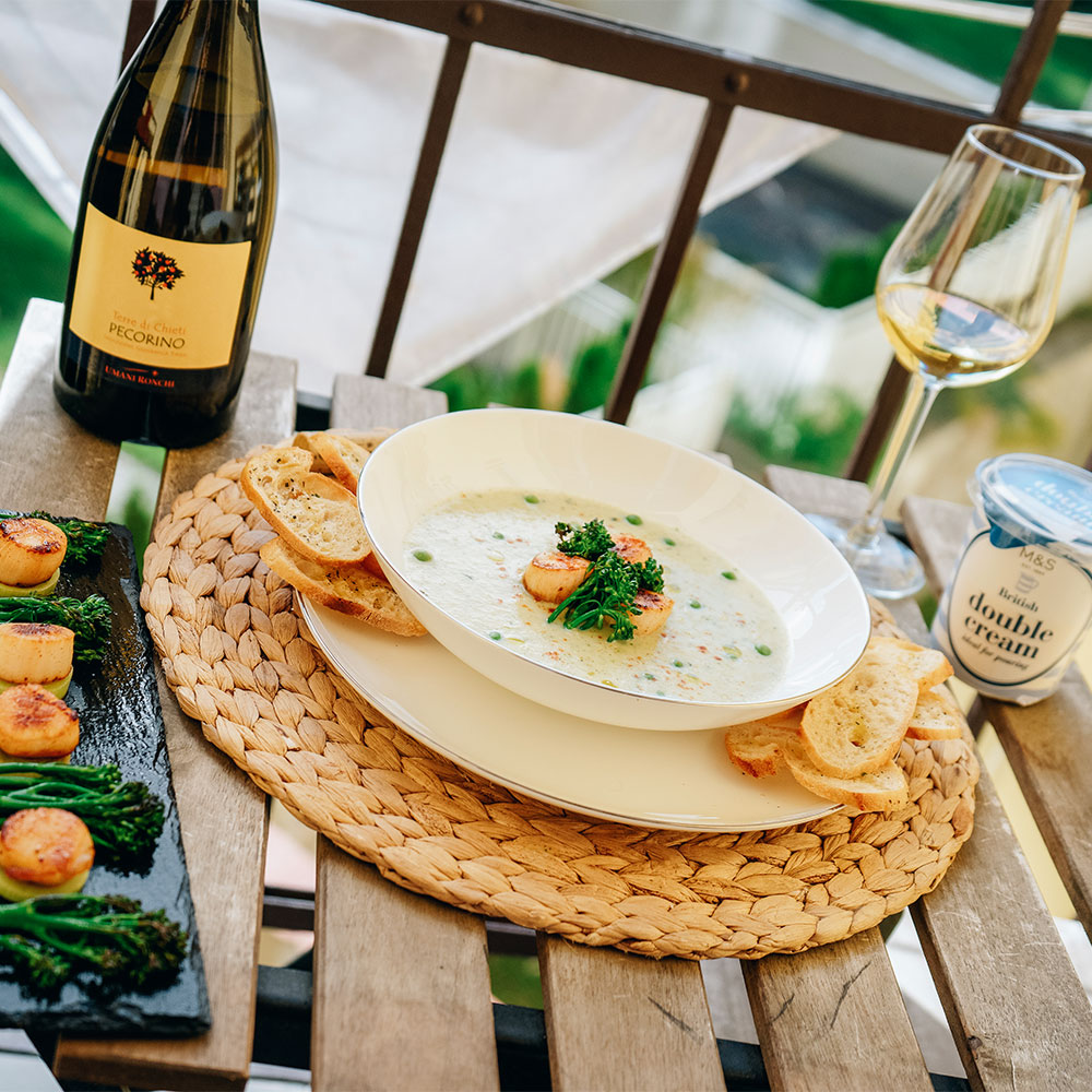 Podzimní pórkovo-brokolicová polévka s mušlemi svatého Jakuba od FoodMILLblog