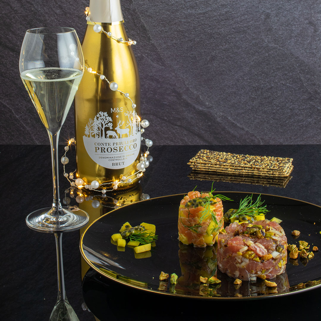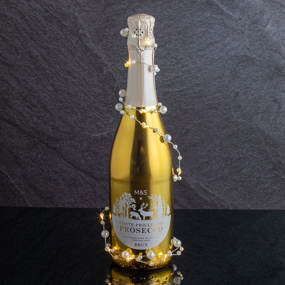 - Prosecco je perlivé, šumivé víno z oblasti Benátska. Odrůda, ze které se Prosecco vyrábí se nazývá Glera. Při nákupu Prosecca doporučujeme sledovat, zda má denominaci DOC nebo DOCG, protože u denominací DOCG si připlatíte více peněz za garanci a prvotřídní kvalitu hroznů. Marks & Spencer nabízí v tomto období velice elegantní a suché ( Brut) Prosecco Conte Priuli Oro. Nadchne vás nejen zlatý design láhve, ale také o něco kvalitnější, ročníková verze 2019 (Millesimato) DOC, které doporučujeme k aperitivu ale i silvestrovským slavnostem.