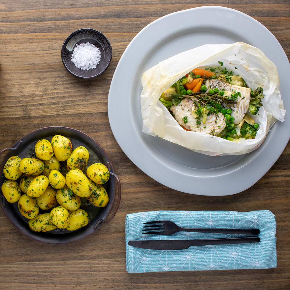 Treska pečená v papilotě s bramborami a zeleninou od FoodMillBlog